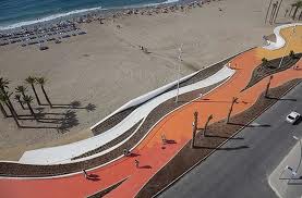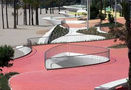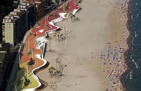 Obra de los arquitectos Carlos Ferrater y Xavier Martí Galí, tiene un trazado que recrea las formas de los acantilados y el oleaje, con superficies que generan áreas de luz y de sombra, que van construyendo un juego de plataformas y niveles que permiten su utilización como zonas lúdicas, de ocio o de meditación.
