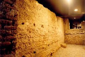 - Muralla de la ciudad (declarada BIC el 14-XII-1.998).Datada en época almohade (mitad del s.XII a mitad del s. XIII) con reformas posteriores. Discurre a lo largo del sótano de extremo a extremo en sentido longitudinal.