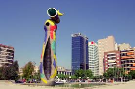 Junto a la calle Tarragona hay un canal artificial de agua que refresca este lado del parque. Allí encontramos la monumental escultura de Joan Miró, "Dona i Ocell" (Mujer y Pájaro), de 22 metros de altura. Junto con el parque, fue inaugurada en 1983, un poco antes de la muerte del artista. En el otro extremo del parque encontramos la biblioteca pública que también lleva el nombre de Joan Miró.