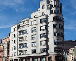 Esta construcción es ejemplo de la corriente de arquitectura racionalista que imperó en Bilbao desde los años 30 hasta bien pasados los 50 del siglo XX. En este caso, además, también se une el expresionismo monumentalista. Proyectado en 1944 por Pedro Ispizua y Fernando Arzadun, destacan del edificio su esquina en curva con una torre que se eleva y en la que se han colocado dos esculturas alegóricas, los cuerpos escalonados lateralmente y las fachadas raseadas.