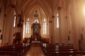 Iglesia moderna, aunque de estilo neogótico, realizada en hormigón. Planta con tres naves cubiertas por bóvedas ojivales, con cinco tramos en la central y cuatro en laterales. Cabecera pentagonal, flanqueada por cuerpo bajo a la derecha y torre de campanas (octogonal con esbelto chapitel) en extremo noroeste. Fachada pintada en amarillo pálido (paños) y gris (cornisa). Decoración relegada a vanos apuntados, rosetón de la entrada y cornisa. Capilla del Sanatorio Labaca.
