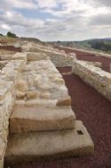 Antes de iniciar el descenso, el visitante puede detenerse a contemplar la perspectiva que ofrece el entorno del yacimiento y reparar en la posición privilegiada de la villa romana, situada a media ladera y orientada al mediodía.