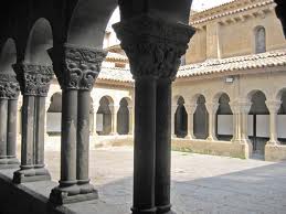 Su claustro rectangular está formado por arcos de medio punto y columnas dobles con elaborados capiteles (38 en total, 18 originales y el resto reproducciones del siglo XIX) que representan la vida de Jesús, así como otras escenas de carácter alegórico e histórico. Este claustro tiene en su lado este varias capillas en desigual estado de conservación: