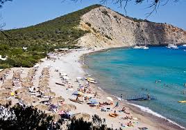 Este extenso arenal, rodeado de dunas repletas de sabinas, fue la primera playa nudista de Ibiza y una de las pioneras del país. Su arena blanca, los tonos turquesas y la ausencia de hoteles y construcciones hacen de ella un auténtico paraíso.