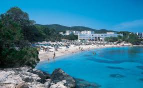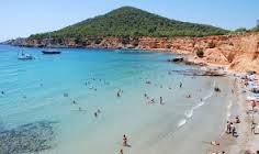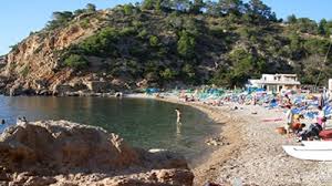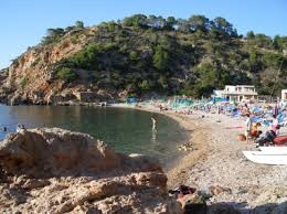 La primera cala a continuación de la bahía de Sant Antoni, ya en el municipio de Sant Josep, en plena zona turística.