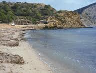 Playa amplia, de arena blanca y ambiente familiar, protegida en los flancos por bellos acantilados. Uno de los puertos naturales de la isla, una auténtica piscina natural con una zona amplia de casetas varadero de pescadores en la orilla derecha.