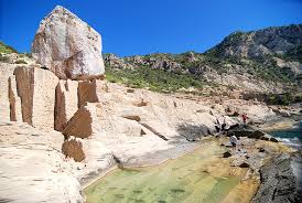 Al principio de la playa hay una zona de rocas que se asemeja a un paisaje lunar, lo que añade un atractivo mayor a esta cala, a la que, sin embargo, suele acudir mucha gente.