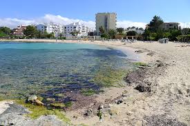 El entorno de la playa constituye una de las más importantes zonas turísticas de la isla. En las calles paralelas al mar hallarán discotecas, como Space, centros comerciales, bares, centros recreativos para niños, un parque acuático, instalaciones deportivas, restaurantes…