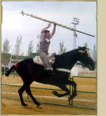 Comienzan las carreras, el Comisario arranca su caballo y suelto de manos juega el Estandarte con seguridad y maestría; al compás suenan las palmas y vítores de los asistentes. A continuación se realizan carreras entre todos los jinetes y caballos que acompañan al Comisario.
