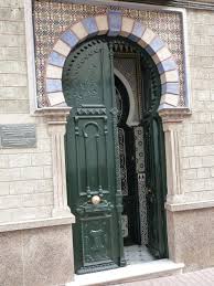 La fachada llama la atención por su abundante decoración árabe: arcos de herradura con dovelas alternativas en diferentes colores, albanegas con azulejos alicatados y terminando la fachada una preciosa balaustrada almenada.