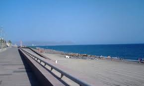 Playa de arena oscura y aguas tranquilas, que se extiende a lo largo de 1.500 metros y que cuenta con numerosos servicios y equipamientos: aseos, duchas, alquiler de sombrillas, hamacas y náuticos, paseo marítimo, chiringuitos y acceso para minusválidos. Se accede a ella a través de la avenida Cabo de Gata, en coche particular o en autobús urbano. Cuenta con aparcamientos en la zona de El Palmeral.