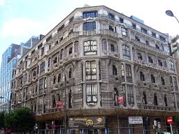 El acceso al edificio se realiza desde la calle Alameda de Recalde, a través de una portada adintelada con gran clave en resalte e importante decoración flanqueándola. Rompe la verticalidad del edificio el predominio de la línea ondulada, tanto en las formas de los vanos (balcones y miradores), como en la decoración y, sobre todo, en la sinuosidad de los balaustres del segundo y tercer piso.