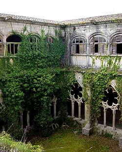 Durante el siglo XV se va conformando la disposición del antiguo monasterio gótico: al sur de la iglesia se sitúa el claustro principal, de planta cuadrangular. A la galería Este se abrían la sacristía -totalmente remodelada en el siglo XVI- y la imponente sala capitular con un vano de acceso acompañado de ventanas laterales. , en su parte superior, claustro alto, están los dormitorios. Al sur estaba el gran refectorio de dos pisos y hacia occidente pudo disponerse un almacén -como parece demostrar la dependencia subterránea. En cualquier caso, la ordenación del claustro fue muy alterada durante las reformas del siglo XVI, cuando se construyeron los grandes cuerpos de celdas y las arquerías del claustro alto.