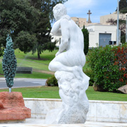 Es por ello que en este conjunto escultórico aparece un Delfín que transporta Apolo hasta la playa de Lloret, que tiene una altura de 2.50m, esta realizado con un mármol de Carrara. La escultura de Dafne esta hecha de mármol travertino de Persia, de un color rojizo, que es el color del sacrificio. Finalmente, este conjunto escultórico esta rematado por la imagen simbólica de un laurel joven, que se ha hecho de bronce, un material especialmente sólido y resistente.