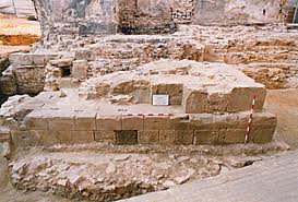 Vestigio de la presencia romana en Gijón. Fue construida cuando la ciudad ya estaba consolidada como tal; cuando las termas ya habían sido construidas. De esta forma los romanos protegían su nueva civitas, mediante una pared muraria, que tendría novecientos metros de largo y dos y medio de espesura. Combinaba los lienzos de muralla con los bastiones y partía de la zona media del actual barrio de Cimadevilla, cerrando el Cerro de Santa Catalina, hasta rodear el lugar donde hoy está la Iglesia de San Pedro. Se mantuvo en pie hasta 1395 en la que la ciudad fue asediada e incendiada a causa de las luchas entre Enrique III de Trastámara y el conde Alfonso Enríquez.