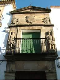Presenta una estrecha fachada de sillería de 1617 con tres cuerpos: en el bajo está la puerta en dintel con anchas pilastras toscanas; en el segundo piso hay un gran balcón flanqueado por dos figuras clásicas de corte manierista, apoyadas sobre ménsulas, y conocidas popularmente como "las sotas de bastos"; y en el centro del tercer cuerpo aparece el escudo de los Austrias flanqueado por el de la villa y otro local.